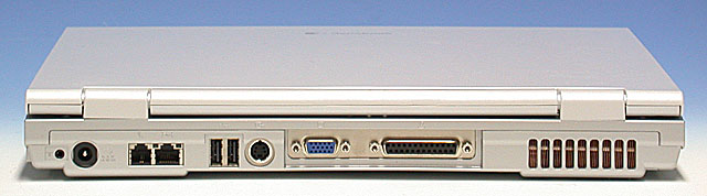 EXのインタフェースは、非常に充実している。PCカードスロット(TYPE II×2スロットまたはTYPE III×1スロット)、SDメモリーカード/メモリースティックスロット、USB 2.0×4ポートやIEEE1394(i.LINK)に加え、プリンタ接続などでまだまだ需要のあるパラレルポートを装備。USBポートが右側面(2ポート)と背面(2ポート)に割り振られた配置は、USB機器の着脱頻度に応じて配置場所を選択でき、ユーザビリティに優れている。 AV関連として、外部ディスプレイ接続用のアナログRGB(ミニD-Sub15ピン)をはじめ、ビデオ(S-Video)出力、マイク入力、ヘッドホン/ライン出力がある。さらにCeleron搭載のEXシリーズ最上位である本機種には、音声入力(左右×各1)、ビデオ入力(コンポジットとS-Video×各1)、TVアンテナ入力も備えており、ハイエンドクラスのノートPC並みのインタフェースを備えている。