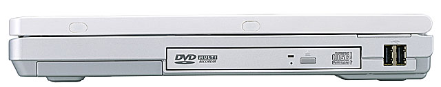 ![]() 右側面には、DVDマルチドライブ、USB 2.0×2を装備する