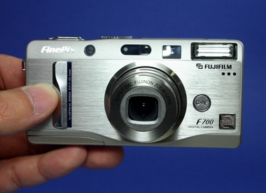 ![]() 小型軽量ボディながら、背面の1.8インチの大型液晶は某社のCGシリコンディスプレイを採用。富士写らしくない?横長のボディスタイルは新鮮。F700は、ボディスタイルでも同社の新境地を開拓しようとしている