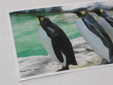 ![]() 顔料インクを使用しているため、耐水性も抜群。出力画像に水道水をかけて軽くこすったが、光沢紙、普通紙ともに画像の乱れはほとんど発生しなかった