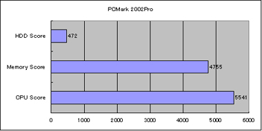 ![]() 3DMark2001SEのベンチマークテスト結果 試用したモデルはPentium M/1.7GHz及び、PC2700のメモリを搭載しているためか、PCMark 2002の結果はモバイルノートPCとしてはかなり優秀と言える。しかし、3Dグラフィックの性能についてはチップセット内蔵の機能を利用しているので、もちろん期待しない方がよい。
