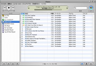 左の「入力源」には自分の好きな曲を集めた「プレイリスト」を作ることができる。ここに曲を追加するためには、曲リストから曲を選んで(複数選択可能)、プレイリストのアイコンのうえにドラッグ&ドロップすることになる。Windows的には、曲を選んで右クリックでポップアップウインドウを開くとそこにプレイリストがある、というのを期待するかもしれないけど、それはない。このあたりは、完全にMacintosh流のユーザーインタフェースだ。 「スマートプレイリスト」というのは、全ライブラリの曲をフィルタで絞りこむものだ。たとえば「ジャンル」が「Rock」でかつ「(発売)年」が「1980」〜「1989」のものとか、「(いままでのiTunesでの)再生回数」が「1」より小さいもの(つまり、一度も再生していない曲だ)といったリストを作ることができる。