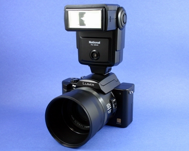 大口径レンズは“4M/12倍/F2.8”のため――「LUMIX DMC-FZ10」(3/3)FZ10には、外部ストロボ用のホットシューが装備されている。内蔵ストロボもコンパクト機としてはかなり光量のあるタイプを装備しているのだが、外部ストロボは内蔵タイプとは比べ物にならないほどの光量以外に、バウンス機能を使って天井や壁に反射させた自然な光を演出できるのが魅力だ。 FZ10で推奨する外部ストロボは、純正オプションのPE-36S/PE-28S/PE-20STの3機種。メーカーサポート外だが、昔、筆者が銀塩マニュアル一眼レフ機で使っていたPanasonic製ストロボ(PE-250S)を装着してみたところ、問題なく使えた。コンパクトデジカメへの外部ストロボ装着は“アタマでっかち”になりがちだが、レンズ径の大きなFZ10は見た目のバランスもよく、実際の使用感も非常に安定している。