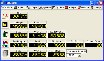 ![]() LaVie Jの「HDBENCH3.30」結果画面