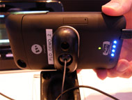 MediaFLO対応端末。iPhoneにも対応するようだ(写真=左)。MophieのiPhone向けバッテリーパックにMediaFLOチップを埋め込んだ(写真=中)。MediaFLO専用端末「Personal Television」(写真=右)無線通信技術は、HSPA関連、LTE、フェムトセルなどを紹介。LTEは、Ericssonのネットワーク機器、マルチモードチップ「MDM 9600」を搭載したUSB接続端末というライブのデモ環境で、約70Mbps程度の通信速度を実現していた。