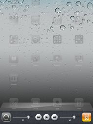 ちなみに、iPadのマルチタスクバーには、iPhoneとは違う部分がある。iPhoneでは、画面サイズが小さいため、左からスクリーンの回転ロックアイコン、音楽アプリの巻き戻し、再生、早送りボタン、そしてiPodなどの音を出しているアプリケーションのアイコンというボタン3つをアイコン2つが囲む構成だったが、iPadでは画面の大きさを生かして、回転ロックアイコンの右側にバックライト輝度調整のスライダーが、そして再生制御系ボタンの右側には音量調整のスライダーが表示される。