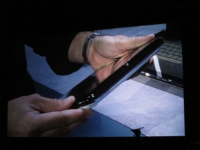 GPUやノースブリッジをワンチップに統合したAMDの“Fusion”APUを採用したモバイルPCでは、従来と比べて約2倍に相当する約9時間のバッテリー駆動が実現するとアピール。さらに、Samsungと共同開発している“Surface PC”のデモも実施した。