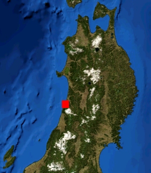 図2 MCHを利用したエネルギー備蓄・回収システム 水素を経由して電力を液体燃料の形で備蓄できる点が優れている。日立製作所は技術の詳細を公開していないものの、MCMから水素を取り出す際の反応速度を高めるため、Pt(白金)微粒子などの触媒を利用していると考えられる。出典:日立製作所国立極地研究所は、今回納入するシステムを使って、2011年11月から2012年3月までの期間、秋田県の南西部、日本海に面するにかほ市(図3)で実証実験を進める予定だ。国立極地研究所が設置した風力発電機と接続して基礎データを取得する*4)。
