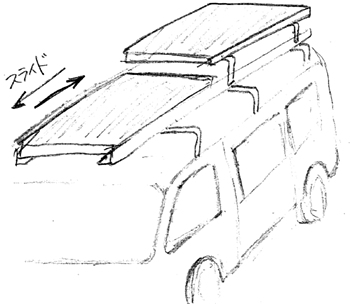 図1 太陽電池モジュールの搭載方法 利用時には2枚のうち1枚をボンネット側に引き出して展開する。引き出した太陽電池モジュールはポール状の部材で支える仕組みだ。太陽電池モジュールの重量は1枚10kg以上。「重量の問題が解決できれば、モジュールを3枚搭載することも可能だ」(EVhonda)。太陽電池モジュールの寸法は1580mm×808mm。出典:EVhonda「自治体では非常用電源を備える動きがあり、電源車、つまり移動できる発電機としてのEVのニーズがあると考えている」(EVhonda)。同社は新潟県で事業を展開している。「農家では何台も自動車を所有している。軽トラックや軽ワンボックスカーの所有率も高い。こういった車はルーフが平らでEVの改造に適しており、複数ある車のうちの1台を電源車として使えるようにすることを訴求したい」(同社)。