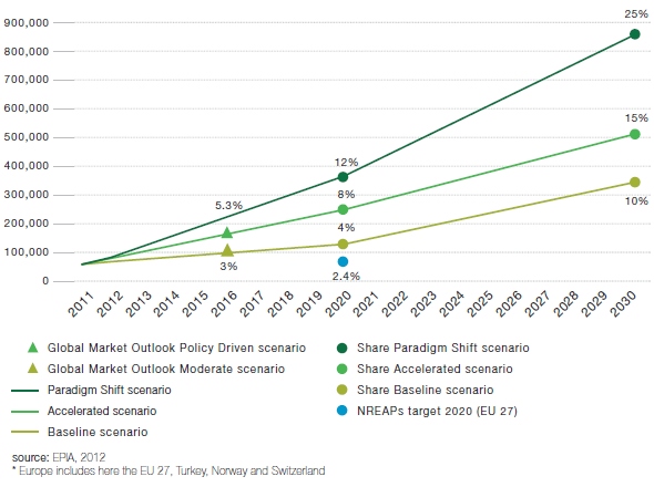 太陽光発電システムに関する世界最大の業界団体European Photovoltaic Industry Association(EPIA)によれば、2012年以降の新しい秩序とは、成長のエンジンが欧州からそれ以外の世界へと広がっていくことを意味する。