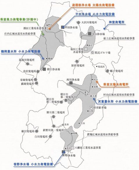 山形県は震災から1年後の2012年3月に「山形県エネルギー戦略」を策定して、太陽光・風力・小水力を中心に再生可能エネルギーの導入を推進している(図2)。小水力発電は浄水場などの水道設備から導入を開始して、新たにダムにも拡大していく計画だ。神室発電所は山形県が県営ダムに建設する初めての小水力発電所になる。