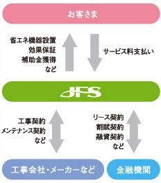 JFSは東京電力や三菱商事など4社が2000年に設立したエネルギー管理の専門会社である。「シェアード・セイビングス」と呼ぶ初期投資が不要なESCOサービスを中核に事業を展開している(図2)。秦野市と結んだ契約もシェアード・セイビングス方式である。