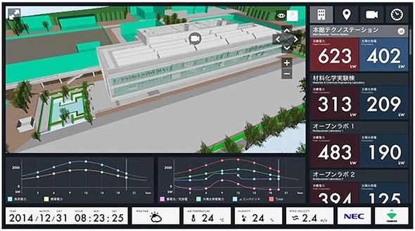 エネルギー利用効率の高いビルの研究開発を進める大林組が新たに大規模なエネルギー管理システムを稼働させた。東京都内の研究所にある10カ所の施設を通信ネットワークで結び、電力の需給予測や気象の予測情報に基づいて発電・蓄電機器をリアルタイムに制御することができる。