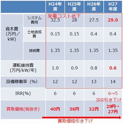 このまま太陽光発電が増え続けても需給バランスの調整ができれば問題はないが、まだ日本では再生可能エネルギーを加えた需給調整技術の開発と導入が進んでいない。原子力発電を復活させたい政府の思惑もあり、今後ますます太陽光発電を抑制する対策が強化されていく。出力制御に続く第2の施策は買取価格の抜本的な見直しだ。