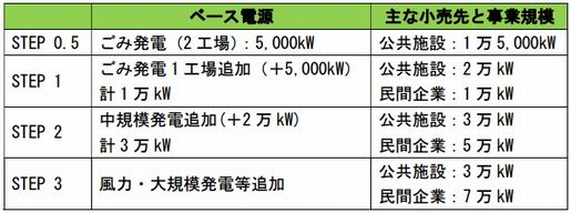さらにごみ焼却場を1カ所追加してから、供給先を民間企業にも広げて本格的に電力小売事業を拡大する(STEP 1.0)。数年後には2万kW級の発電設備をベース電源に加えることも決まっている(STEP 2.0)。