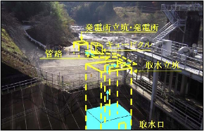 同発電所は、東上田ダムの左岸にある既設取水口から維持流量分を取水し、新設する水圧管路で下流側に導水(サイホン式)して、立抗内の水車・発電機で発電する。発電後の流水は現状と同様にダム直下に放流する。発電出力は370kW(キロワット)、想定年間発電量は約266万kWh(キロワット時、一般家庭約740世帯分の年間使用電力量に相当)。2017年7月に着工する予定で、2018年7月の運転開始を目指す。発電した電気は中部電力が買い取る計画。なおCO2削減量は約1320トン程度とする(図2)。