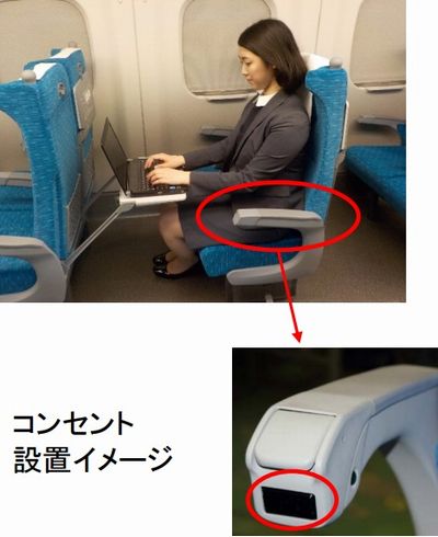 利便性の点ではグリーン車の座席に限定していた電源コンセントを、普通車を含めて全座席に設置する予定だ(図6)。新幹線の車内でノートパソコンやスマートフォンの利用者が増加していることに対応するサービスである。
