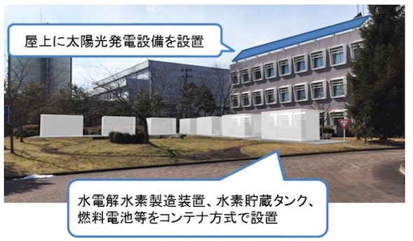 水素製造システムは、研究開発センター内の約400平方メートルの敷地を活用して設置する。施設の屋根に約50kW(キロワット)の太陽光発電設備を設置し、発電した電力をためる容量約60kWh(キロワット時)も併設する。