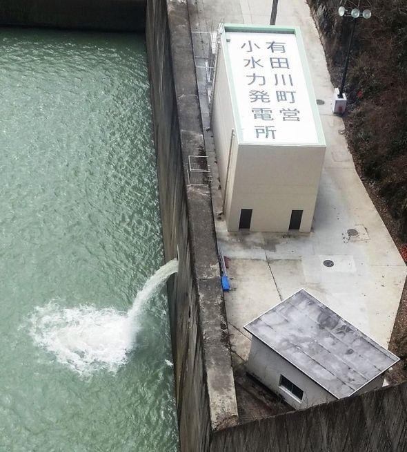 和歌山県の内陸部にある有田川町(ありだがわちょう)には、東西に広がる町を横断して有田川が流れている。川の上流にある「二川(ふたかわ)ダム」の直下で、町が建設・運営する小水力発電所が稼働中だ(図1)。
