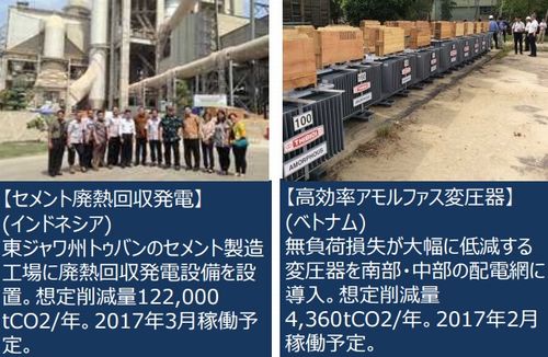 これまでに16カ国を対象に、合計101件の事業をJCMのスキームで実施している。その中にはインドネシアのセメント工場の廃熱を利用した発電設備をはじめ、各国の電力供給の安定化や省エネ設備の導入を支援するプロジェクトが含まれる(図4)。それぞれのプロジェクトで削減できたCO2排出量に応じて日本の貢献が評価される仕組みだ。