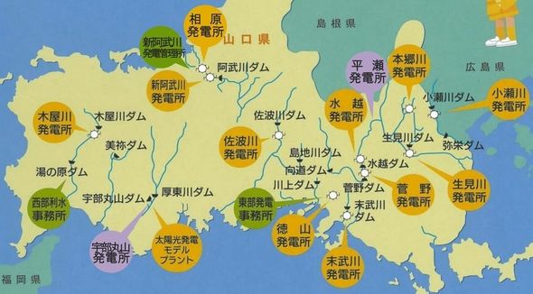 宇部丸山発電所を含めて県営の水力発電所は現在12カ所で稼働中だ(図8)。大半は1950〜60年代にかけて運転を開始した大規模な水力発電所で、12カ所の発電能力を合わせると5万kWを超える。このうち固定価格買取制度の対象になる小水力発電所は2カ所にあり、さらに1カ所で建設プロジェクトが進んでいる。