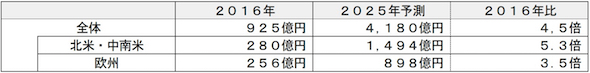 変電所や発電所などの系統設備、太陽光発電や風力発電に併設される電力貯蔵システム向けの系統用二次電池市場は、利用される電池が大型であることもあり、最も市場規模が大きい。2016年の市場規模は925億円で、2025年には4.5倍の4180億円に拡大すると予測した。