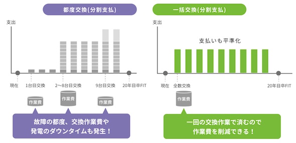 一般に太陽光発電向けパワコンの製品保証期間は10年に設定されているケースが多い。この場合、10年目以降にパワコンが故障した場合には、そのつど発電事業者が費用負担して修理や交換を行う必要がある。オムロンによると、こうした費用負担を理由にm20年間にわたるFITの期間満了前に発電事業者が事業を断念し、発電所が放置されるケースが想定されるという。