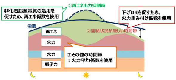 よって改正省エネ法では電気需要の最適化を促すため、電気の需給状況の変動に応じて、電気の一次エネルギー換算係数を変動させる。