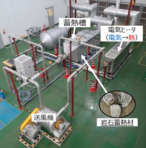 東芝が岩石蓄熱技術を用いた蓄エネルギーシステムの実証試験を開始。経済性にも優れ、再生可能エネルギーの出力変動対策などに活用できるという。