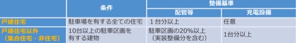 今後のZEVの普及が見込まれる中、住宅等の新築時にZEVへの備えをすることは、建築物価値向上の観点からも重要である。よって建築物環境報告書制度では、ZEVの充電設備の整備基準を導入することとした。