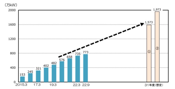 再エネ(太陽光・風力)導入量の想定については、10年後を想定し、