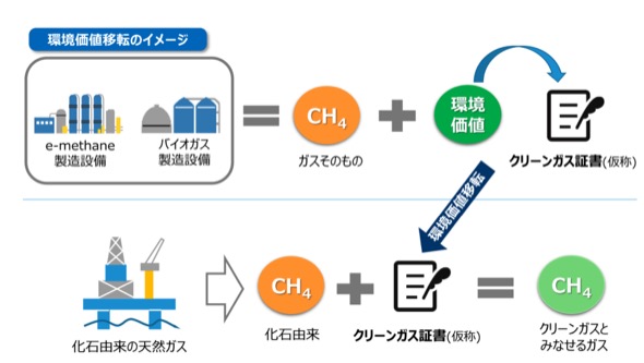 基本的な仕組みは、電力における「グリーン電力証書」と同様であり、合成メタンの環境価値をガスそのものとは切り離して移転することが可能である。本制度では、e-methaneとバイオガスをクリーンガスと定義している。