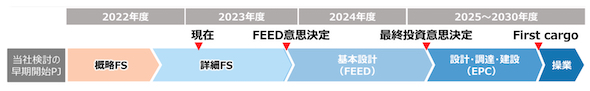 大阪ガス等の事業者は、2030年合成メタン1%導入に向けた具体化を検討中であり、早ければ今年度中にFEED(基本設計)の意思決定を予定していることを公表している。