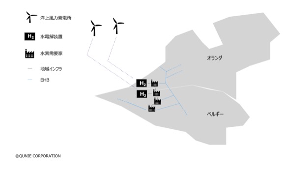 本プロジェクトで生産されたグリーン水素は、前述したEHBで作られる水素パイプラインで各需要家に供給される予定である。ポイントは、洋上風力発電所の建設/運営ノウハウを持つ企業が、洋上風力発電所の建設と併せてグリーン水素製造も主導することである。これにより、計画段階からグリーン水素を製造する上で最適な洋上風力発電所や水電解装置を設計することができ、より競争力があるプロジェクトを計画できると考えられる。
