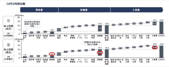 今後は、太陽電池モジュール変換効率のさらなる向上や、稼働年数を20年から30年に長期化する取り組み、ベストプラクティスを参考とした工期の短縮や効率化による造成費・工事費の削減等により、コスト低減を進める予定としている。