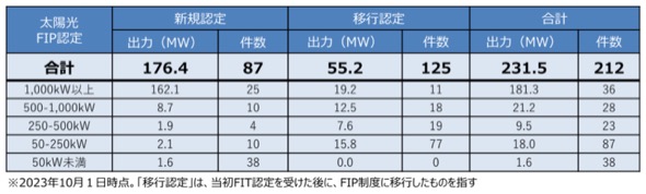 現時点、50kW以上の太陽光はFIT/FIPを選択可能であり、FIPのみが適用される規模は、2024年度にその対象が「250kW以上」に拡大されることが決定している。