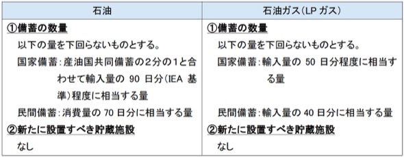 国は石油備蓄法に基づき、毎年、当該年度以降5年間の石油及び石油ガス(LPガス)の備蓄数量や新たに設置すべき貯蔵施設に関する目標を策定しており、最新の備蓄目標は表1のとおりである(※石油1バレル≒0.159kl)。