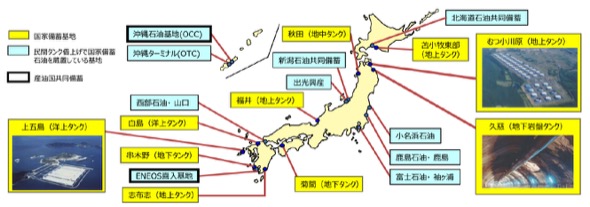 国家備蓄原油は、10カ所の国家石油備蓄基地に備蓄するほか、借り上げた民間石油タンク(製油所等)にも備蓄しており、石油やLPガスの備蓄に関する2023年度予算は1,280億円に上る。これらの費用は固定的経費であるため、基地を維持したままで備蓄量を減少させるだけでは費用総額はそれほど変わらない。費用を大幅に減少させるためには、基地の再編・削減が必要となる。