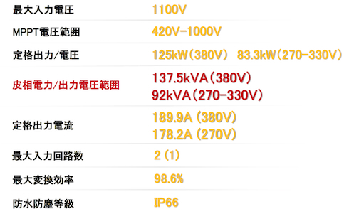 まず、最大出力を125kW/138KVAに設定した点が大きな特徴だ。FIT開始以降、国内では1〜2MW級の発電所が多く建設された。この規模の発電所に導入する場合、125kWという出力であれば8〜16台でリパワリング可能なので、最小限の投資でセントラル型から移行できる。