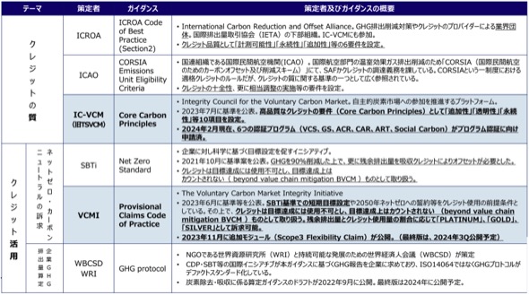 クレジットの質などに対する批判を受け、複数の団体等において、クレジットの質の改善やクレジットの適切な活用(訴求)に向けたルール整備が進められている。