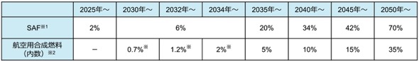 またEUでは、SAFの生産・利用を促進する新たな規則として「RefuelEU Aviation」を2024年1月1日から施行しており、SAF及び航空用合成燃料の最低比率を5年単位で定めている。