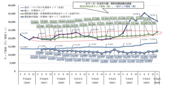 木質バイオマス発電については、持続可能性要件やライフサイクルGHG基準への適合を大前提として、木質バイオマス燃料の安定的な調達が重要となる。国内の間伐材等由来チップの価格も上昇傾向にあるものの、化石燃料の大きな価格変動と比較すれば、相対的に価格は安定的であることが報告された。