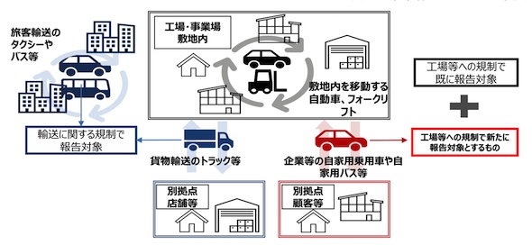 今後は、企業等の自家用乗用車や自家用バス、二輪車等が使用するエネルギーについても定期報告の対象として、中長期的なエネルギー消費原単位の年平均1%以上の低減を促すとともに、合理化目標や非化石エネルギー転換目標の達成のための中長期計画の作成を求めることとする。