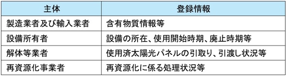 国は今後、非FIT/FIP設備も含め、太陽光発電設備に関する情報(所在地や発電事業の廃止情報等)と廃棄・リサイクルに関する情報(パネル含有物質やパネルの処理状況等)を紐付けて管理することが可能な、統合的な情報プラットフォームの整備に向けた検討を進める予定としている。