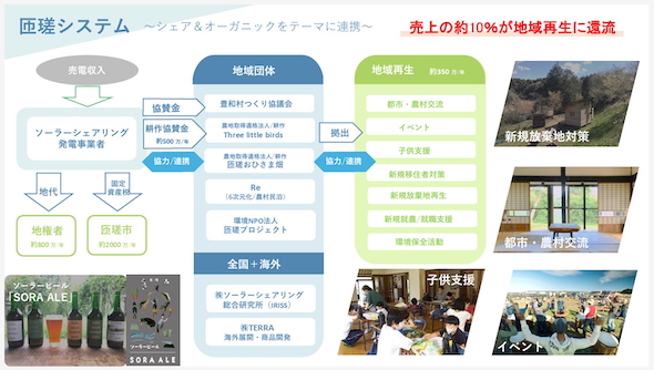 大賞を受賞した市民エネルギーちばの取り組みについては、太陽光発電の活用によるソーラーシェアリング20haでの有機農業、16haに及ぶ耕作放棄地の営農再開、移住者・新規就農者への支援、地域レジリエンスを改善している点などが高く評価された。