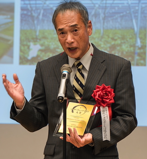 「この度は栄えあるソーラーウィーク大賞を受賞することができ、大変光栄に存じます。地元の農家さん、農業委員会、匝瑳市、パネルオーナーの皆さん、出資をしてくださった方、社債を引き受けてくださった企業さん含めて、多くの皆さま方のご理解とご協力とご支援のおかげです。本当にありがとうございました。今後の展開については、まず全国に健全なソーラーシェアリング、地域を元気にするようなソーラーシェアリングを、47都道府県に最低でも1カ所ずつ作っていくという目標があります。そのためには、トータルでソーラーシェアリングのことが分からなければならないので、ソーラーシェアリングアカデミーというプログラムを運用して、人材育成に努めてまいります。それから、ペロブスカイトをソーラーシェアリングと融合させることも進めていきたい。そのための製品開発を並行して進めてまいります」