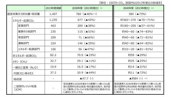 これらの施策により、エネルギー起源CO2全体で、2040年度に約360〜370百万t-CO2の排出削減量を見込む。