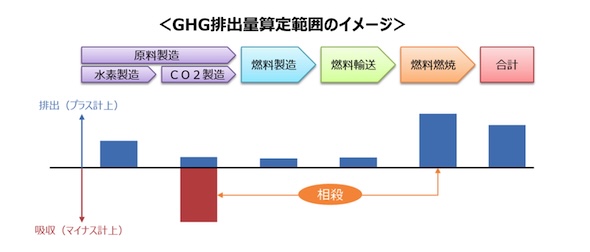 合成燃料は、火力発電所や大気中から回収したCO2を原料として取り込み、燃料として使用(燃焼)する時点でCO2を排出する「カーボンリサイクル燃料」の一つである。