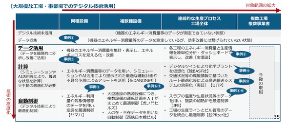 デジタル技術を活用することで、まずは既存の生産プロセスのエネルギー利用の最適化を進めつつ、次第に対象範囲の拡大や技術の高度化を進めることが求められる。