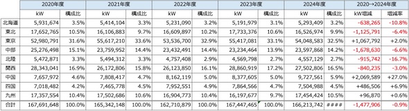 2020年度から2024年度まで5回のオークションの約定容量の推移をエリアごとに見たものが表3である。エリアプライスが高値となる北海道や九州エリアでは、これまで約定容量が減少傾向にあったが、今回は若干の増加に転じたことが確認できる。